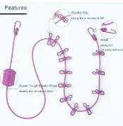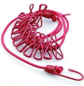 CLOTH DRYING ROPE WITH HOOKS ELASTIC CLOTH HANGING ROPE FOR CLOTH DRYING WITH 12 CLIPS CLOTH ROPE FOR DRYING CLOTHES FOR TRAVEL HOME OUTDOOR