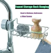 STAINLESS STEEL FAUCET RACK, HANGING TYPE, SUITABLE FOR KITCHEN SINK, BATHROOM SINK STORAGE RACK, CAN BE PLACED SPONGE, SOAP, SHAMPOO, SHOWER GEL