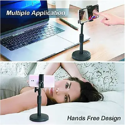 • This desktop cell phone holder, can keep your hands free and have a steady video recording without trills when doing recording or living broadcasting. The inner diameter is 5.7cm, and one of the sides can be prolonged to 9cm maximum. It is suitable for the width of a smartphone between 5.7cm-9cm.